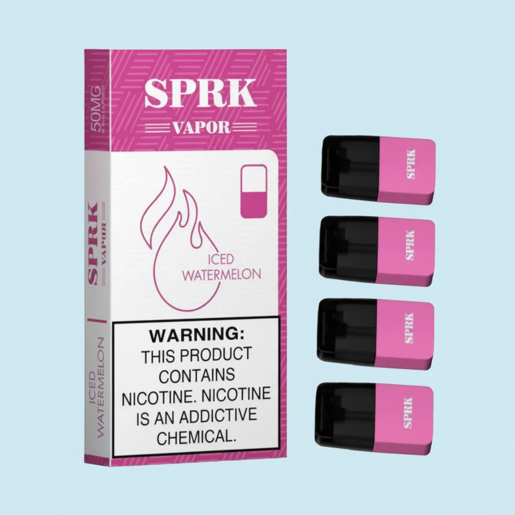 The SPRK Vapor Iced Watermelon Pod pack contains 4 pre-filled disposable pods. Each pod is factory-sealed and ready to use right out of the box. The 4-pod pack gives you enough supply for extended use without frequent reordering. Each pod delivers consistent iced watermelon flavor from first puff to last.